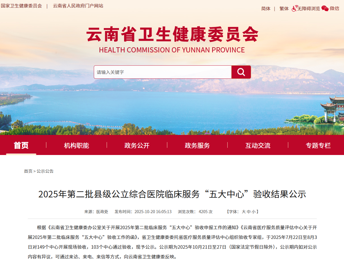 10月20日,云南省卫生健康委员会发布公示,楚雄市人民医院临床服务“五大中心”、临床营养科薄弱专科建设项目顺利通过省级验收,创伤中心亦成功通过云南省医疗服务质量评估中心的复审。 此次顺利通过验收与复审,是楚雄市人民医院全体职工凝心聚力、攻坚克难取得的坚实见证,更是医院医疗服务能力...[详细]