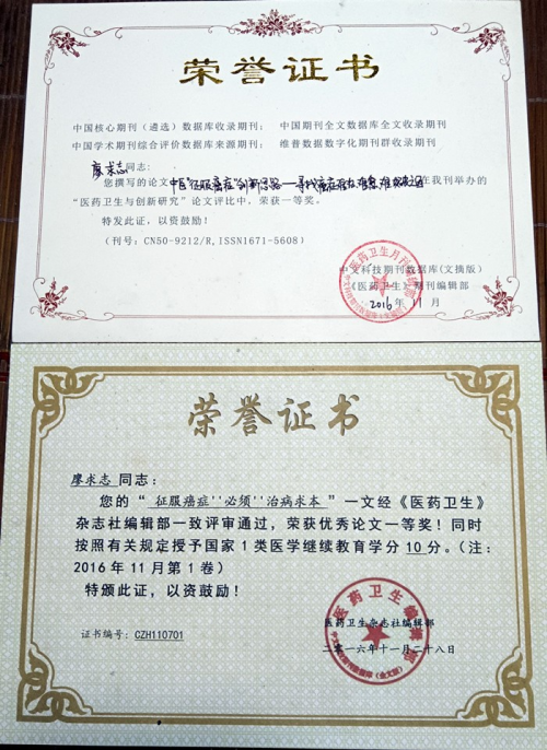 上述三例癌症,一例还可以,两例不尊医属,造成不利后果。我又学术浅薄,无行医资格证,就不敢坚持要患者坚信于我,只能顺患者家属之便。但从许多治例中体会到,相信中医,坦然服药,约医理对路,可从晚期治疗到康复。如果半信半凝,又是中医又是西医这些几乎结果不妙。呼中华人民坚信中医,中医治癌精准对路,运用循环祛邪扶正,相信攻破癌症目标很快带到。