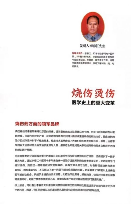 The "Li Chunjiang Fulekang Antimicrobial Spray" he participated in developing, produced by Henan Hualong Pharmaceutical, has become the preferred choice for many burn patients due to its characteristics of "instant pain relief, no scarring, easy application, and self-healing." As a practitioner under the identity of "Renhetang Li Chunjiang, a Traditional Chinese Medicine (TCM) Physician," he integrates burn medications with TCM therapies such as acupuncture and massage to provide comprehensive medical services, fully leveraging the holistic regulatory advantages of TCM.