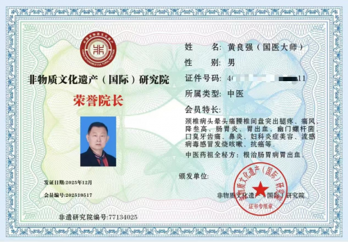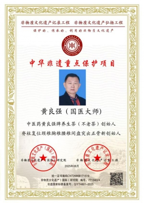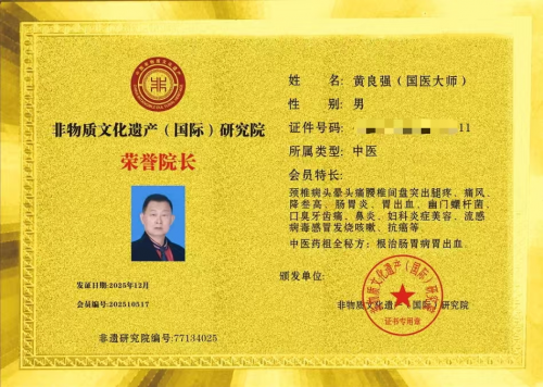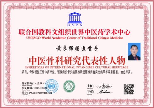 全球非物质文化遗产传播传承名师、国际中医正骨医师:黄良强