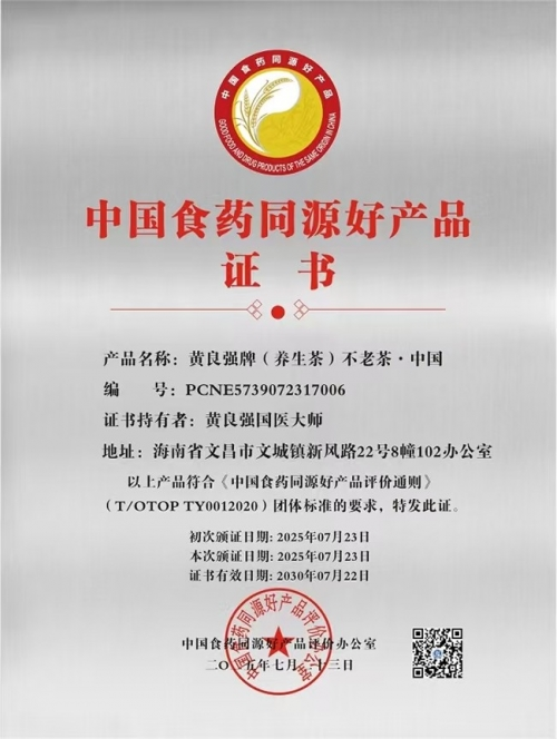 北京国医馆海南海天分馆黄良强国家级中医大师,中医药养生,黄良强牌养生茶《不老茶》吉雷斯世界纪录金奖。天下长寿美容茶纯鲜,活性,无毒。〈组成〉不老树叶,诺丽叶,葛根,山楂,杜仲,红景天,黄芪,等。