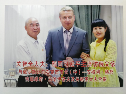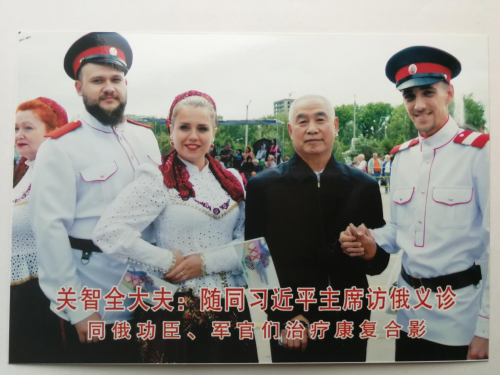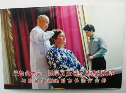 关智全不仅医术精湛,还积极投身于中医文化的传播与交流。2015 年 7 月,他代表中国智慧中医走出国门,随同习近平主席出访赴俄罗斯义诊,其“关公一捏灵”绝技在俄罗斯大放异彩,为国家争得了荣誉,加深了中俄友谊,荣获首届中医外交贡献奖。2016年,在习主席“一带一路”倡议的引领下,他又代表中国中医赴马来西亚、泰国、文莱等16个国家施诊并进行高层论坛学术交流,让中医文化在国际舞台上闪耀光芒。2019年9月,他应泰国政府邀请,为泰国国王及高层领导看病,获得高度好评,进一步促进了中泰外交友谊。